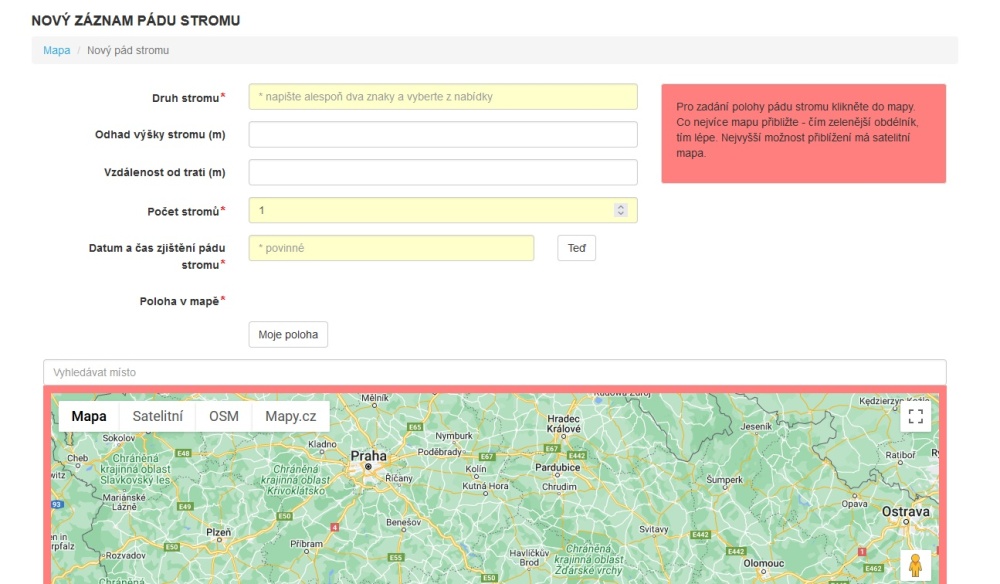 Obr. 2 Formulář pro vkládání dat o spadlém stromu